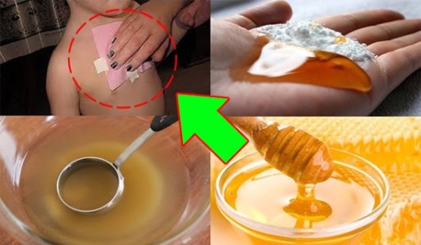 Смешайте сырой мед, оливковое масло, муку и 1 столовую ложку свежего и натертого имбиря, нанесите эту смесь на салфетку или ткань, вокруг которой затем оберните полоску марли. Затем приложите эту марлю к груди или спине и закрепите с помощью лейкопластырей. Взрослые могут оставить средство на ночь, но имейте в виду, что это может вызвать чрезмерное потоотделение. Детям его можно держать до трех часов перед сном.