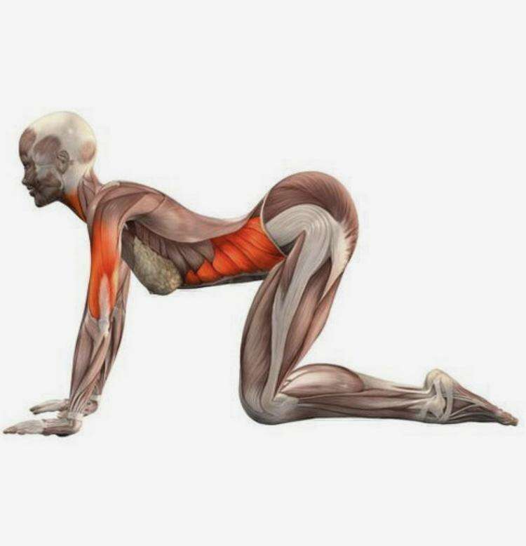 - Позвоночник должен быть расположен параллельно полу, шея вытянута вперед.