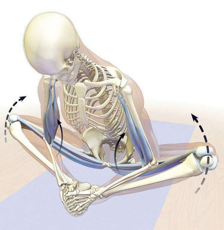 - Левую ногу согнуть в колене и прижать ступней к правой ноге.