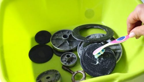 При сильных загрязнениях такое купание ситуацию не спасет. В качестве более радикального метода чистки можно приготовить пасту, соединив две большие ложки соды, маленькую ложку жидкости для мытья посуды и столовую ложку перекиси.