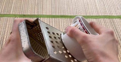 Заточка терки – более сложная задача. У меня есть четыре метода. Если она не очень тупая, подойдет посуда из керамики с шероховатой поверхностью. Следует просто тереть этой поверхностью терку.