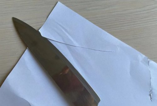 Следует взять лист бумаги и на весу порезать его ножом. Если бумага хорошо режется, нож готов для работы.