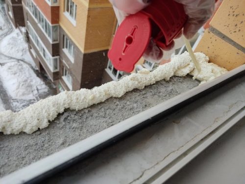 Затем я приобрел монтажную пену и приступил к самому процессу. Я запенил все пустоты, имеющиеся под профилем. Затем я заделал щель между стенками и немного прошелся по внешней стороне.