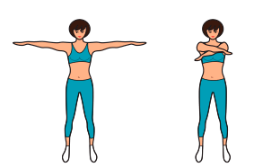 - Вытяните руки по бокам и двигайте ими крест-накрест, имитируя движение ножниц.