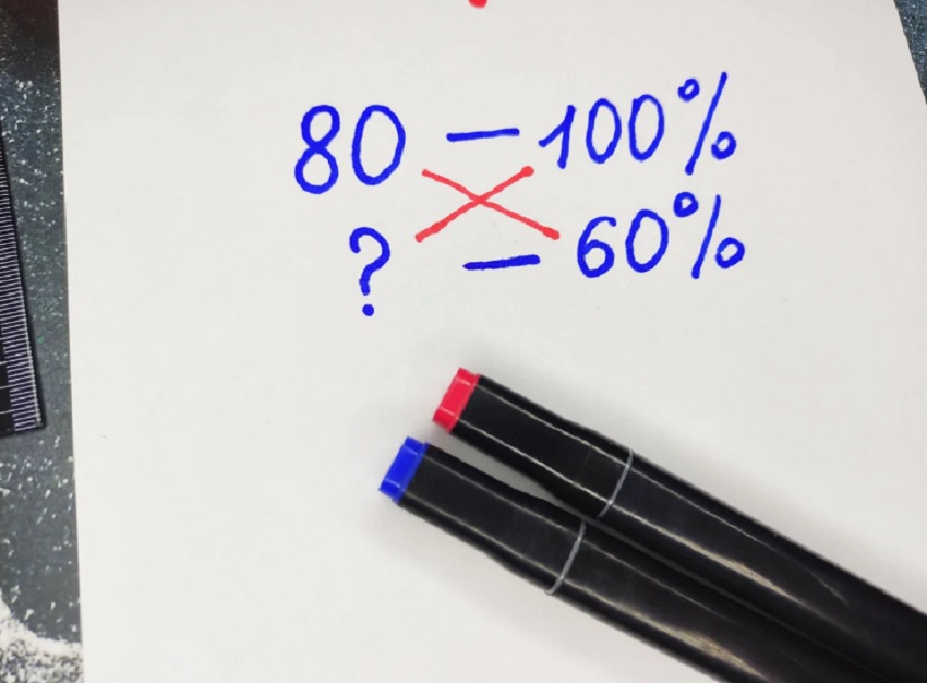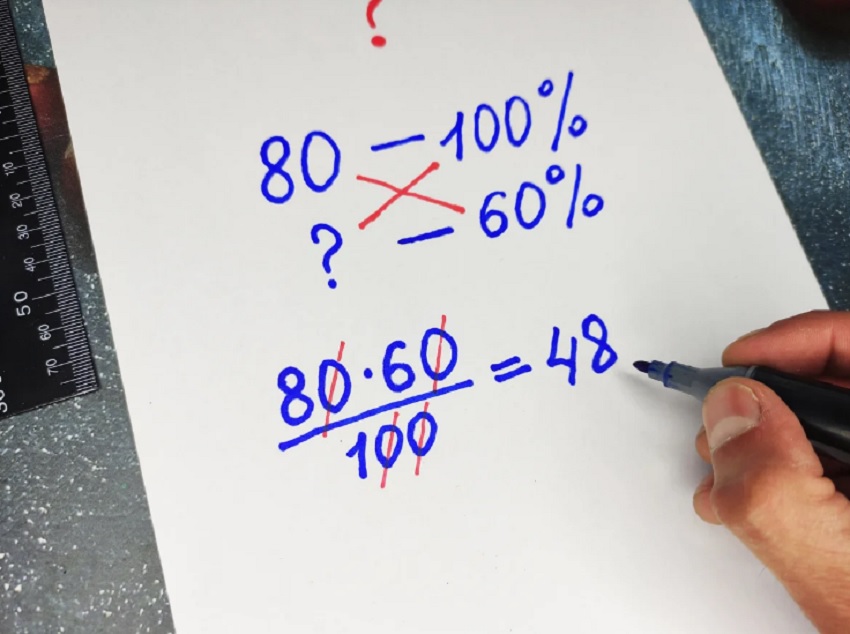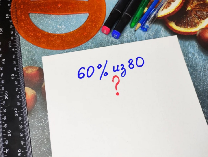 Большинство школьных учителей учат вычислять процент от числа методом пропорции. Ты, наверное, помнишь, как это делается. Если нет, то давай освежим в памяти способ из школы. Попробуем найти 60 % от числа 80.