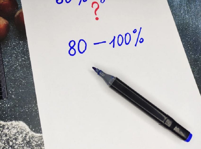Конечно же, для вычисления лучше всего взять тетрадь, так как держать всё в голове трудно. Для начала мы определяем, что 80 — это 100 %.