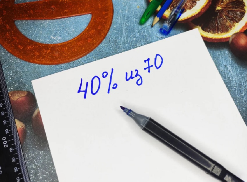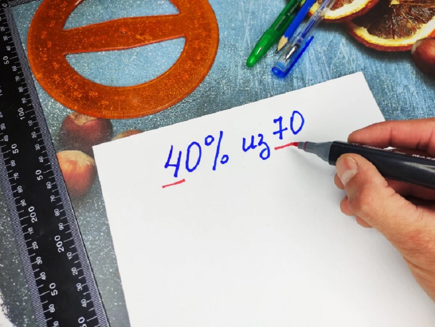 Выучив этот метод, ты сможешь с легкостью решать задачи с процентами в уме. Достаточно всего лишь потренироваться несколько раз. Рассмотрим, как это делается, на примере. В этом задании вычислим сколько будет 40 % из 70.