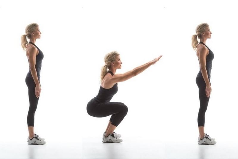 Приседания важно делать правильно. Нужно встань прямо, ноги поставить на ширине плеч, держать спину ровно. Слегка отвести бедра назад и приседать. Главное правило — колени не должны выходить за пальцы ног. Лучше всего выполнять глубокие приседания. Вес нужно переносить на пятки, чтобы хорошо проработать ягодичную мышцу. Начинать лучше с 20 повторений и увеличивай их количество. Ниже обучающее видео.
