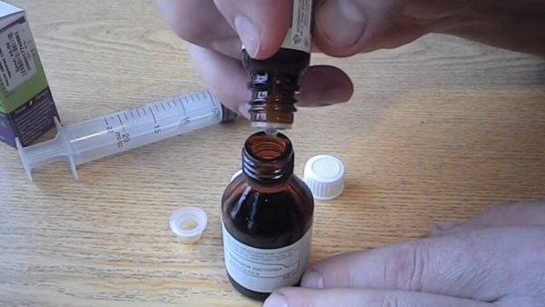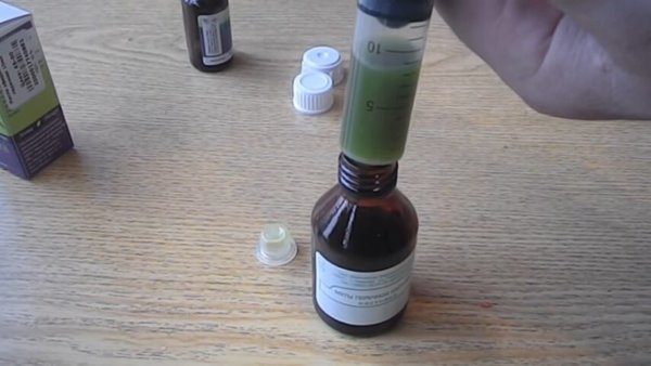Обе настойки следует смешать вместе, закрыть бутылку и хорошенько взболтать. Затем, чтобы было удобно работать, нужно набрать мятную жидкость в шприц с иголкой.