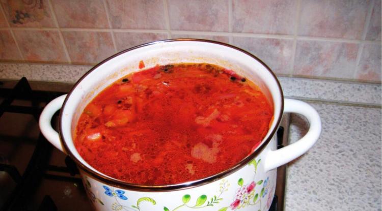 Во-вторых, посуда. Я всегда варю борщ в эмалированной кастрюле или из нержавеющей стали. Алюминиевая посуда и пластиковые контейнеры для хранения борща – табу.