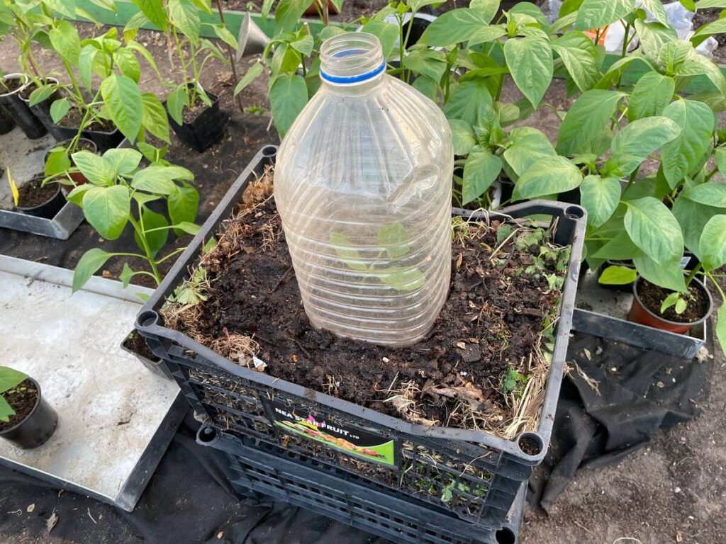 📌Осталось только кабачок накрыть отрезанной пластиковой бутылкой без пробки.