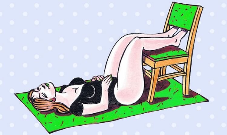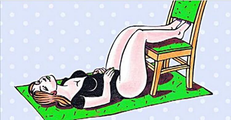 Ляг на пол, желательно на теплый ковер, и забрось ноги на стул. Упражнение помогает восстановить правильный кровоток во всём теле, а спина при этом сможет отдохнуть после дневных нагрузок.