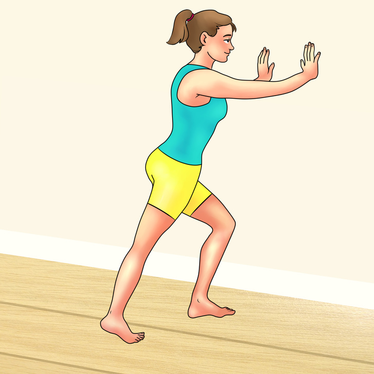 - Встаньте перед стеной и упритесь в нее ладонями, как будто хотите ее толкнуть.