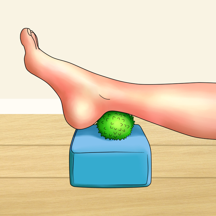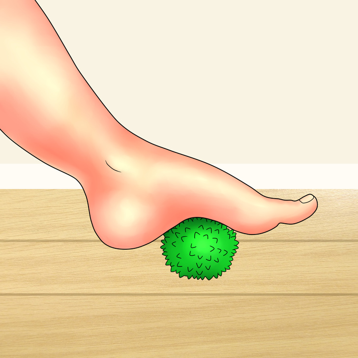 - Катайте мячик от пятки до пальцев ног и обратно.