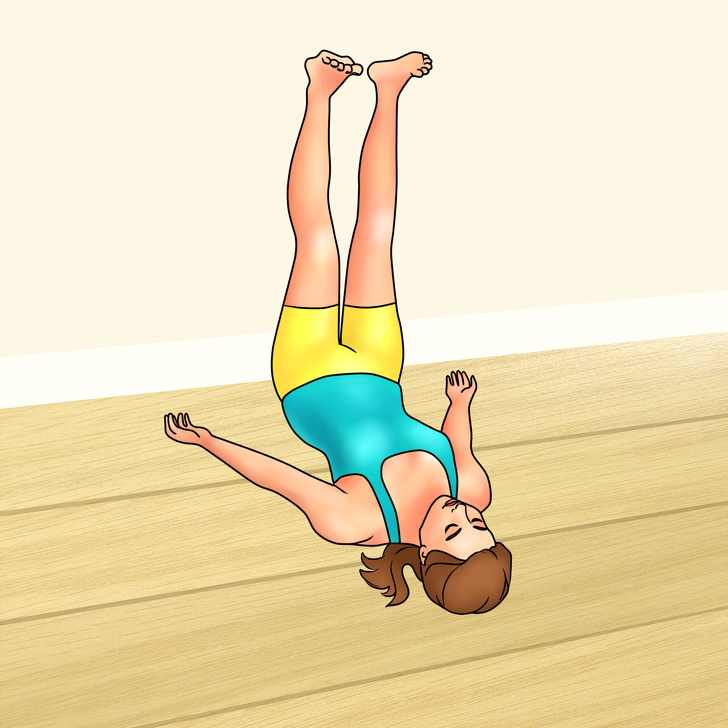- Лягте на пол рядом со стеной, положив под спину свернутое валиком полотенце.