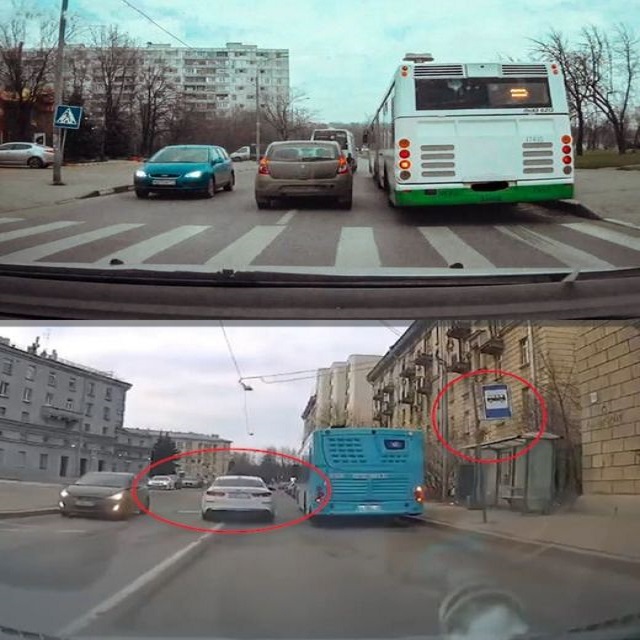 Лет сорок назад, когда машин было не так много, и проблема с объездом по встречке была не столь критична. С годами число машин выросло, и машина, объезжающая автобус по встречке, очень рискует столкнуться со встречным транспортом, который в первый момент может быть не виден за широкой «спиной» автобуса. Остается одно: остановиться и ждать.