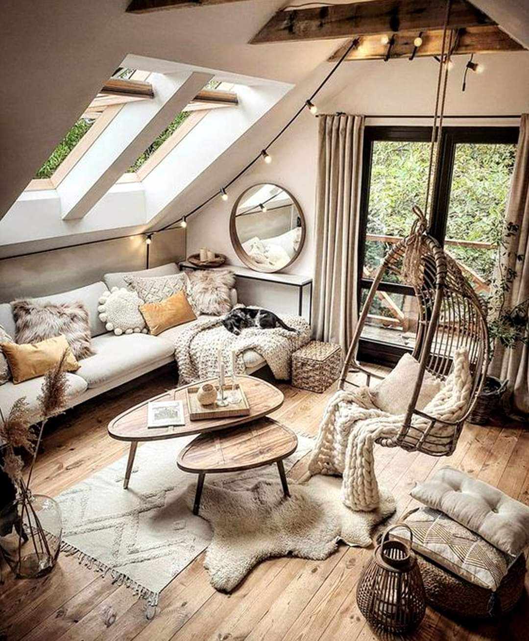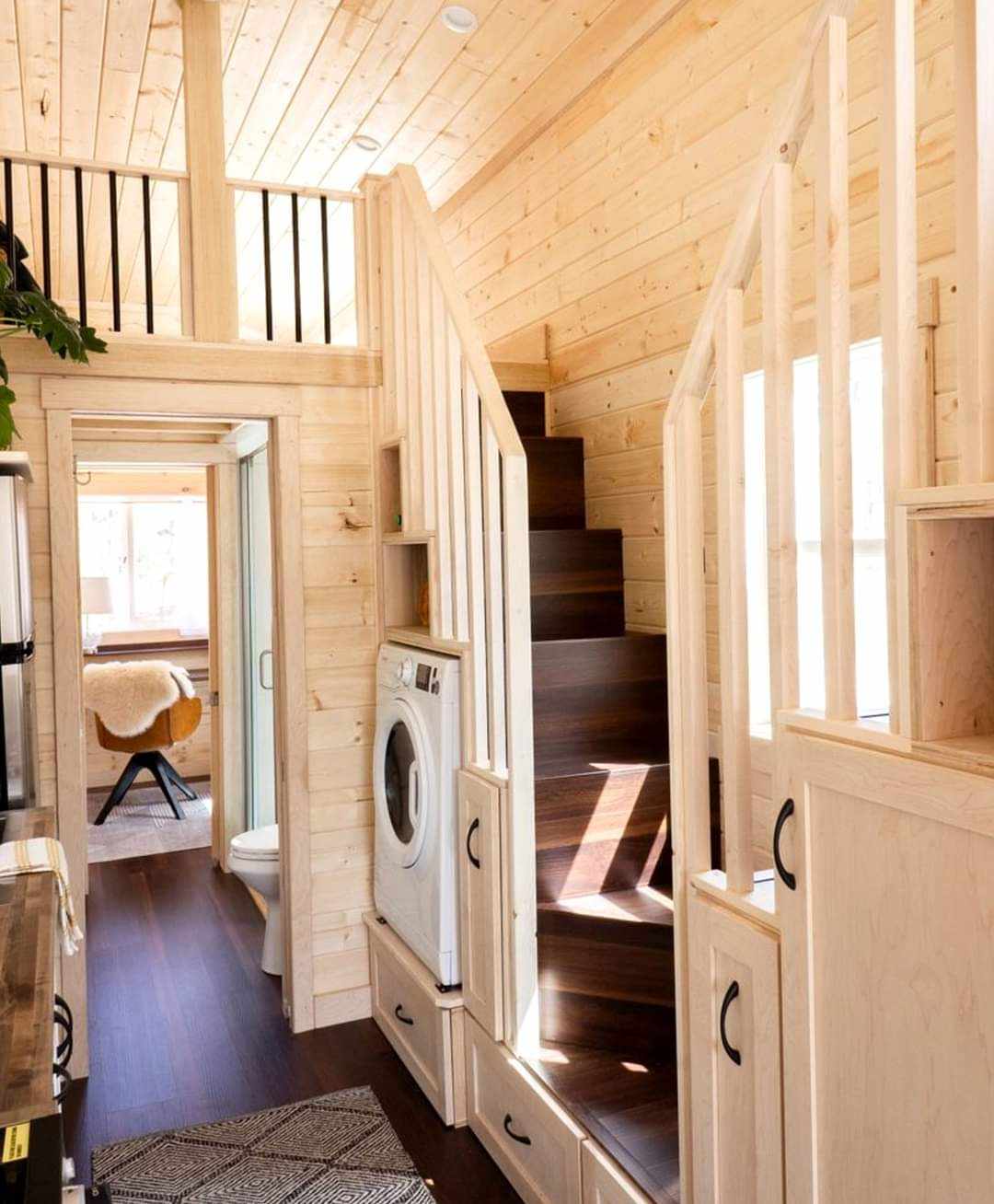 Мебель с продуманным дизайном. Отличное решение — встроенные шкафы или мебель с несколькими функциями. Например, ступени лестницы можно использовать как ящики для хранения.