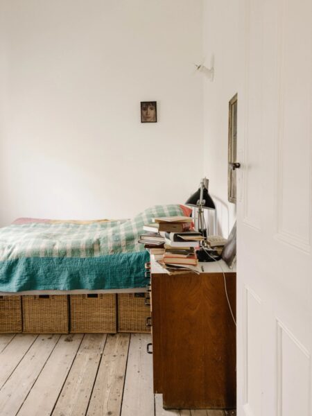 В спальне можно увидеть лишь железную кровать и место для хранения книг. Как пояснила хозяйка, эту комнату она использует только для сна.
