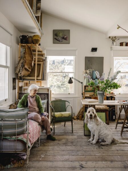 Одна из главных комнат в доме — это мастерская. Здесь нет строгого порядка, все создано для поддержания творческого духа. Хозяйка до сих пор здесь работает не покладая рук.