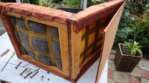 Скажу сразу, что снять обшивку нам было нелегко, потому что она была прибита гвоздями на основе стали, да к тому же производителем использовался еще и клей. Сразу чувствуется, что сделан этот шедевр в СССР – добротно, на века.