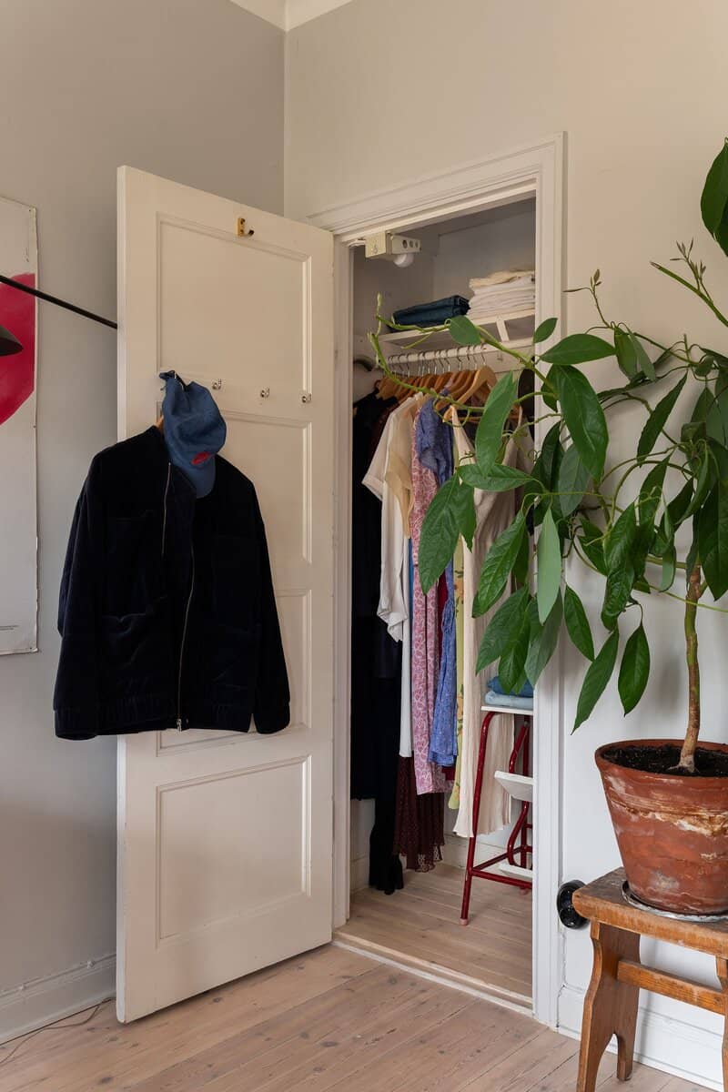 За неприметной дверью в углу скрывается скромный гардероб (впрочем, когда тебе не нужно менять одежду по сезону четыре раза в год, то этого достаточно).