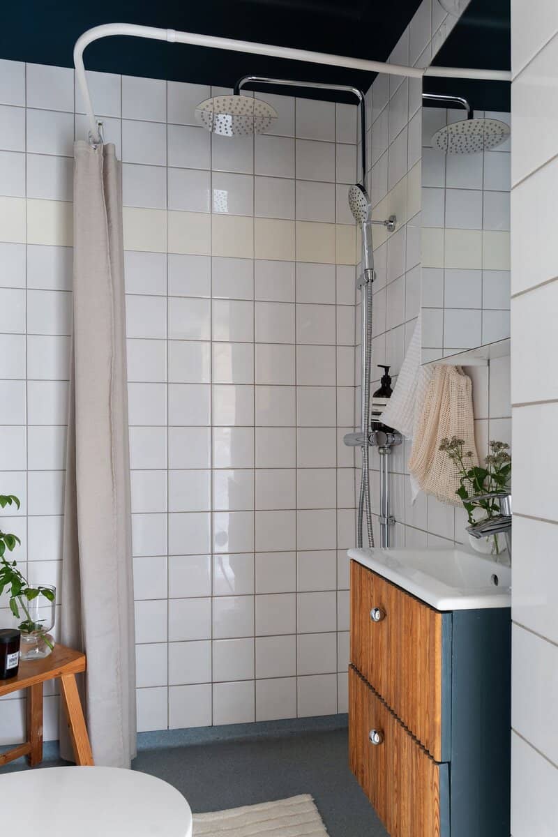 В ванной комнате (вернее, в душевой) мне понравилось, как голубой пол сочетается со шкафчиком.