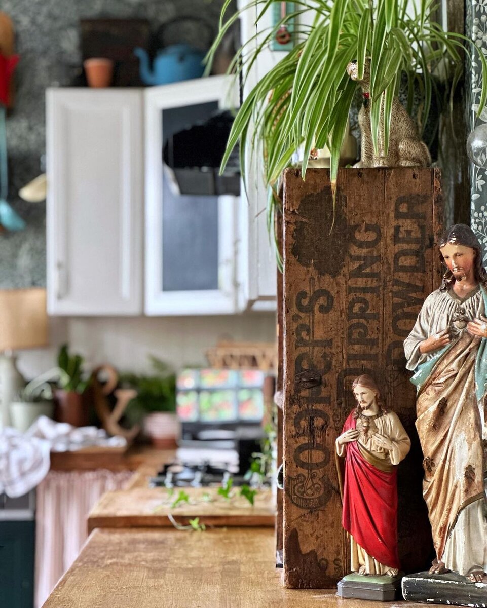 Чего только не встретишь в интерьере этой кухни. Как вам, например, фигурки с Иисусом?