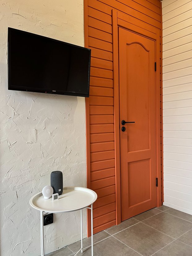 Мы внедрили систему умного дома. Есть датчик, который отслеживает температуру и влажность, умная розетка, включающая обогреватель, если температура в доме падает. Умная лампочка управляется с телефона или через Алису, она меняет цвет и яркость — это очень удобно, когда смотришь фильмы.