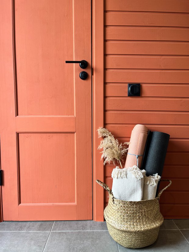 Мы не боялись цвета: если говорить о цветовой гамме нашего интерьера, то это терракотовый, зеленый, бежевый, белый, а для акцента — черный. Этих цветов мы придерживаемся во всех комнатах — как в элементах мебели, так и в текстиле. Палитра делает пространство цельным и гармоничным и позволяет выдержать единый стиль.