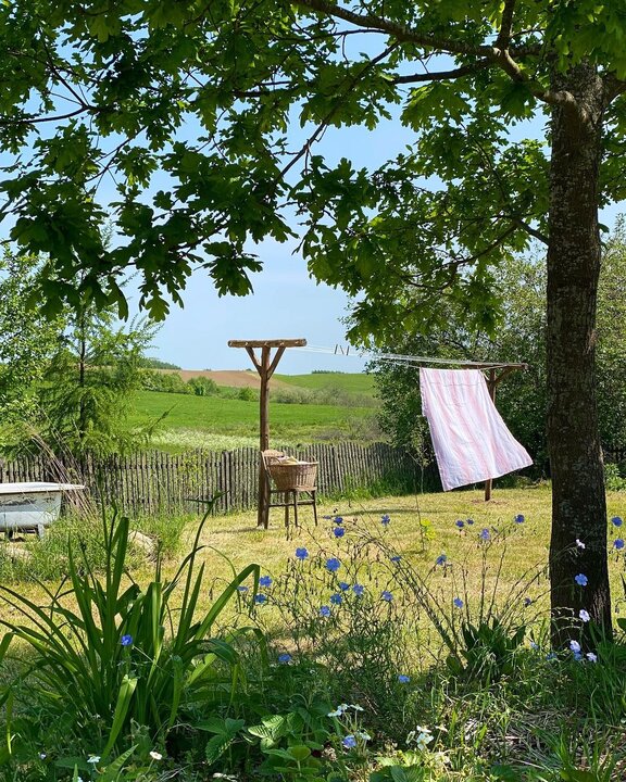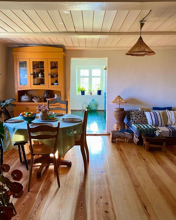 Молодая хозяйка живет в этом доме постоянно. Она коллекционирует винтажные вещи, большая часть которых достается ей бесплатно от односельчан и жителей соседних деревень, а также ведет блог о простой и незамысловатой жизни — без Икеи, модных гаджетов и без погони за модой.