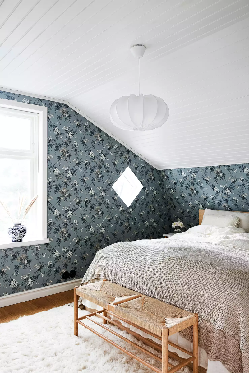 В доме, как вы могли заметить, много обоев с ботаническими мотивами — супруги специально подбирали такие, чтобы подчеркнуть атмосферу старого деревянного дома