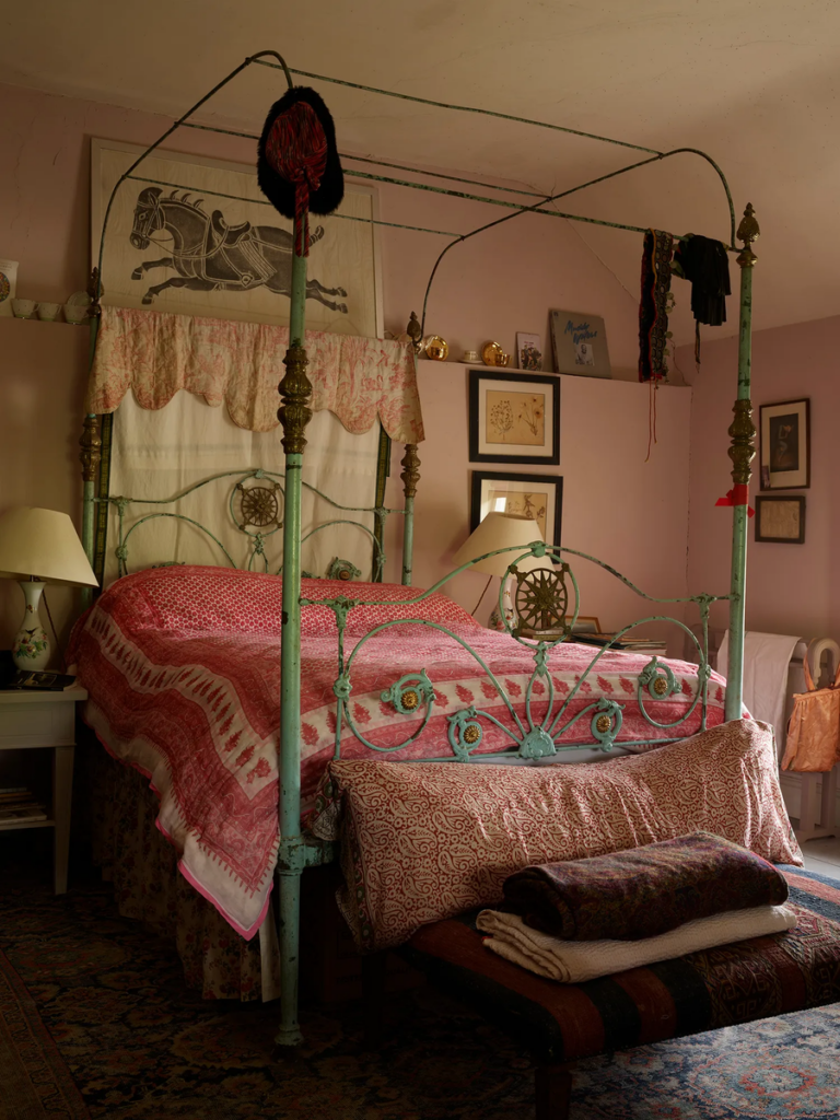 Так выглядит спальня самой хозяйки. Кто-то обратит внимание на железный балдахин с облупившейся краской, кого-то покоробит пожелтевший потолок. Но для 82-летней Джейн в этой комнате всё идеально: от винтажной кровати до старинных гравюр.