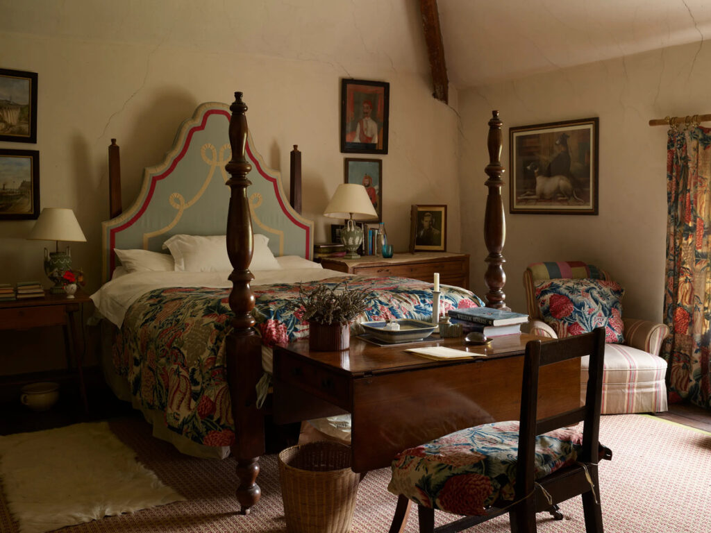 А вот гостевая спальня выглядит куда роскошнее, чем спальня самой хозяйки. Латунная кровать, пышные шторы, балдахин с рюшами — при обустройстве этой комнаты пожилая хозяйка вдохновлялась интерьерами старинных котеджей в Котсуолде (в тамошних домах часто встречаются такие спальни).