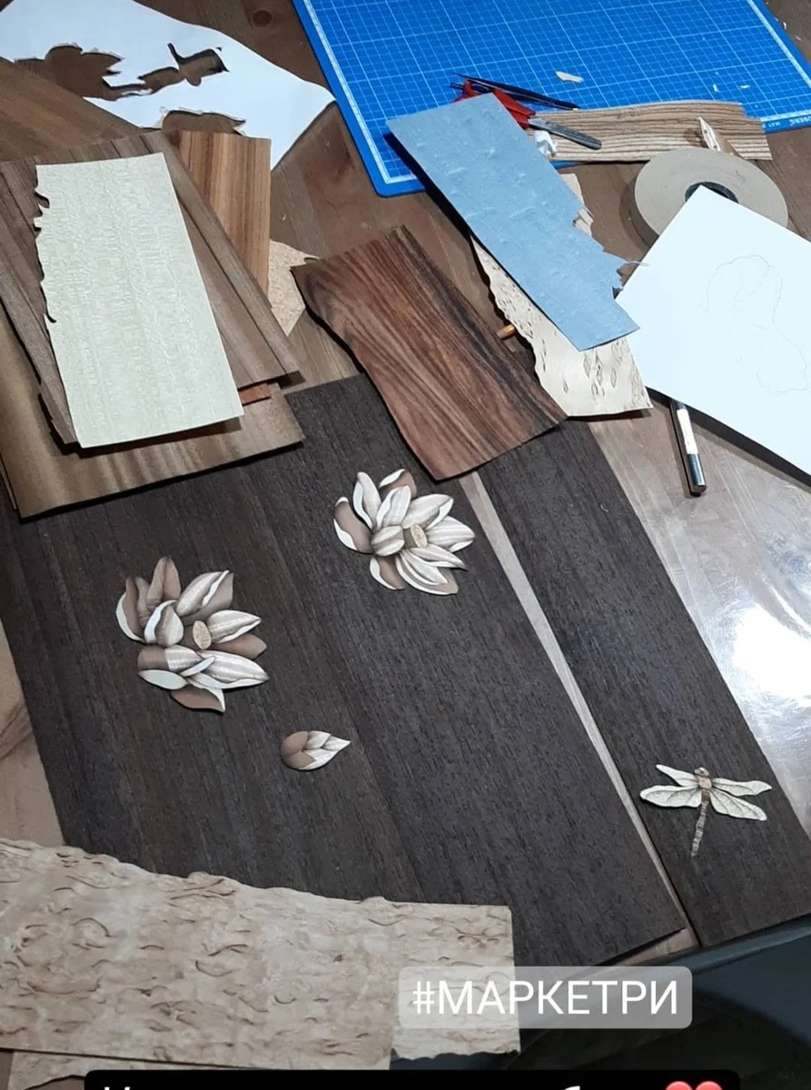 И все это сделано из ценных пород шпона в технике маркетри. ❤️