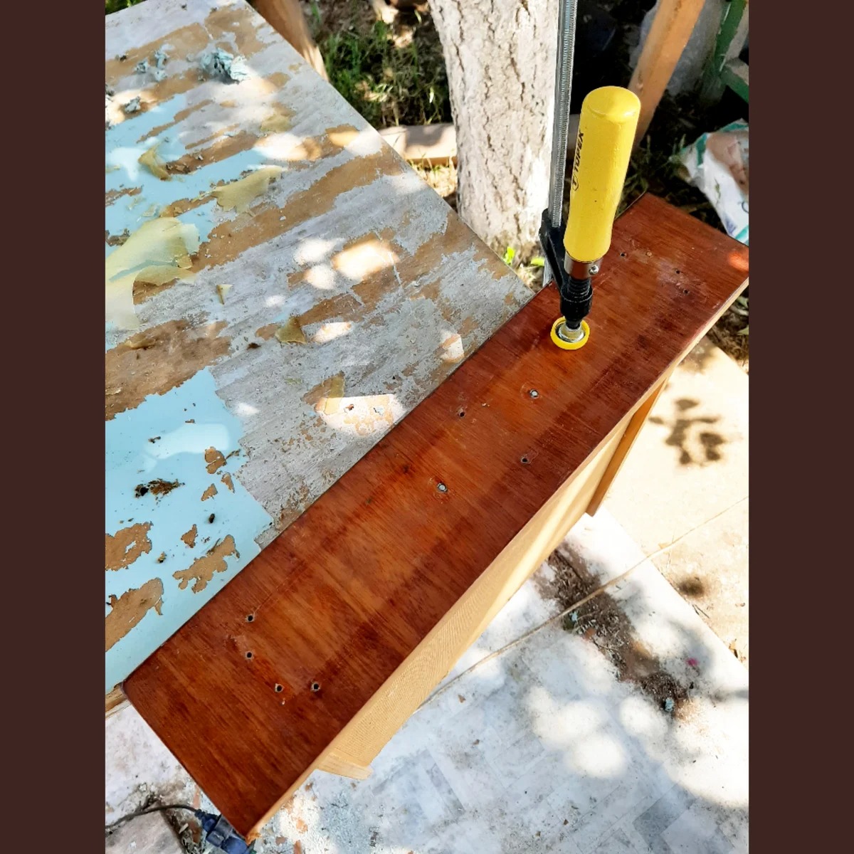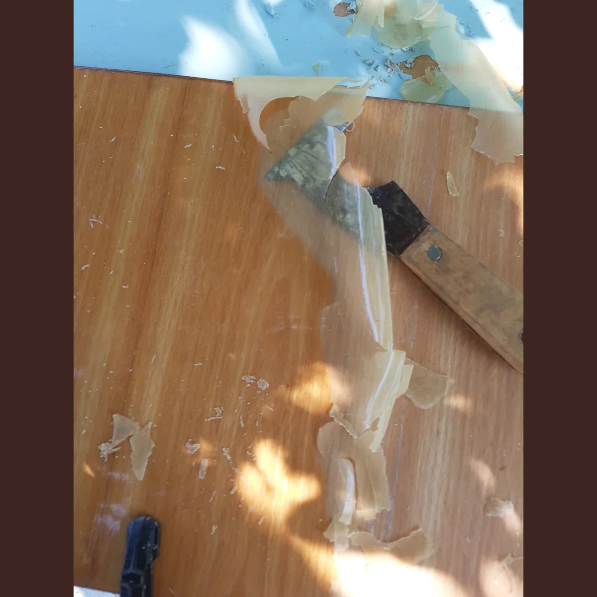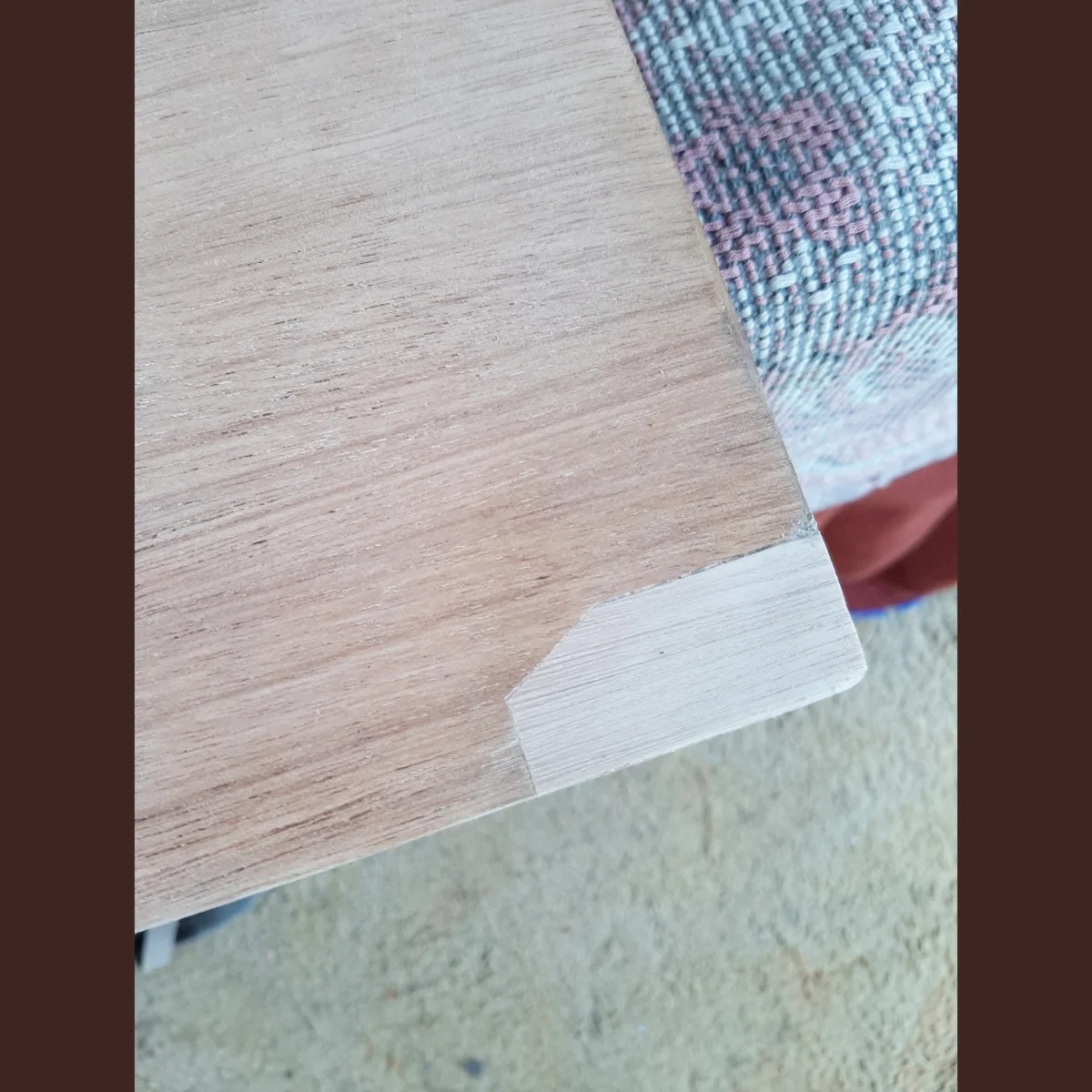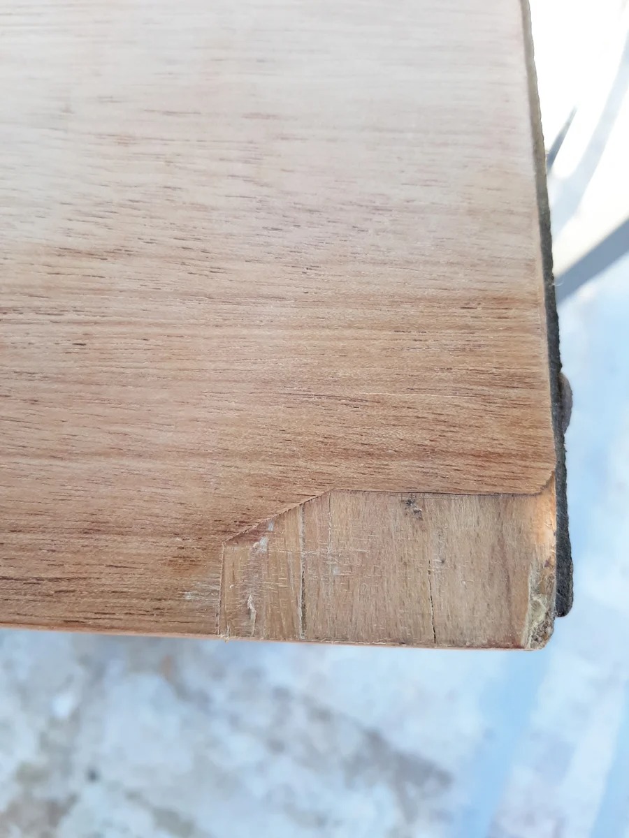 В одном месте на столешнице был небольшой скол шпона. Я его благополучно восстановила