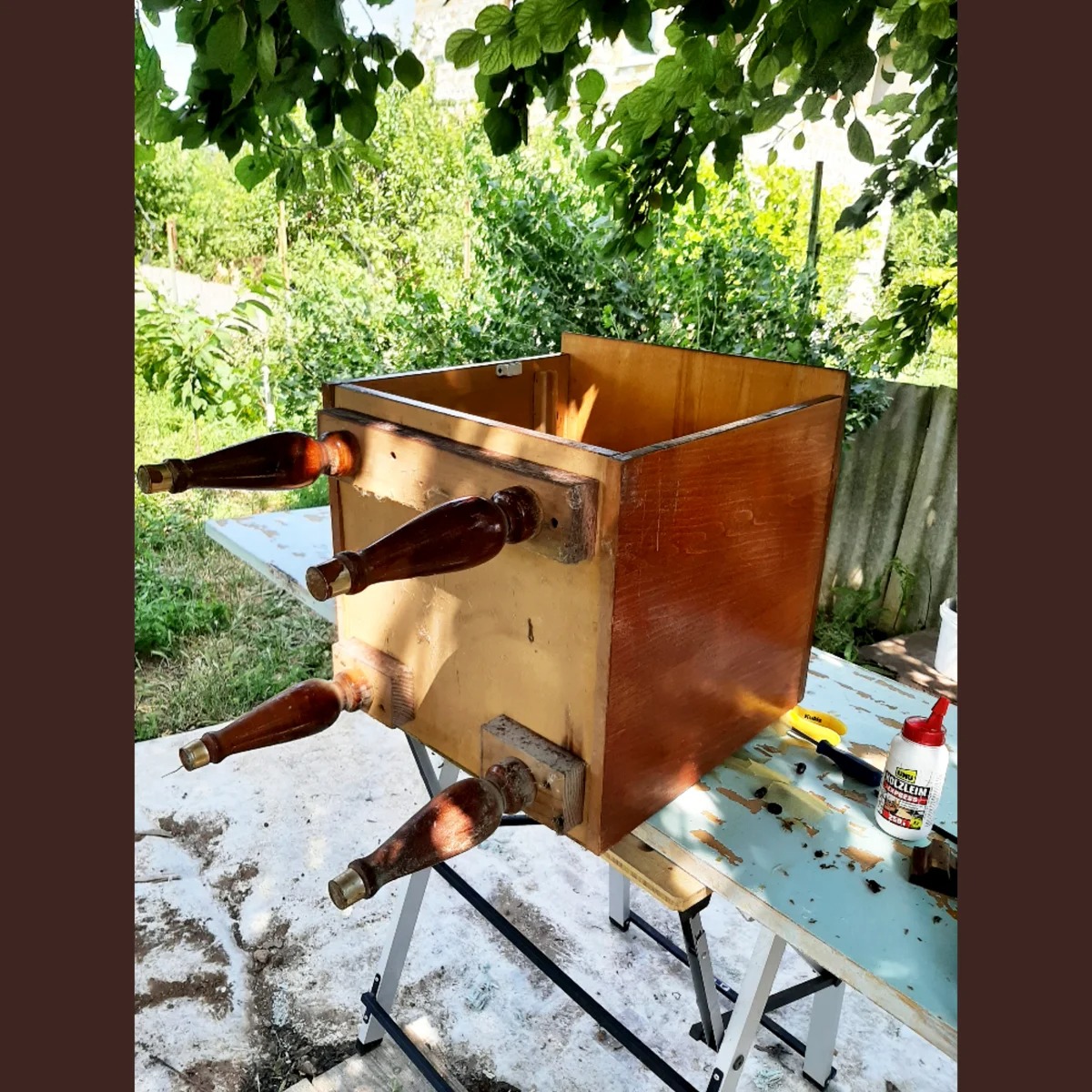 Тумбу эту я нашла около одного известного места, называемого «народным бутиком», то есть на мусорке. И меня сразу же покорили пузато-округлые ножки.