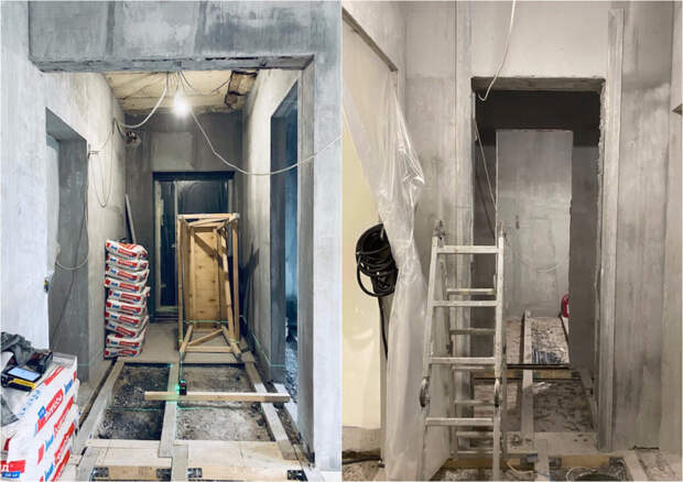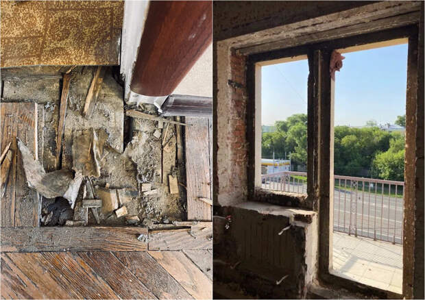 Над спальней тоже хорошенько поработали. Посмотрите, в каком состоянии был пол (на фото слева)
