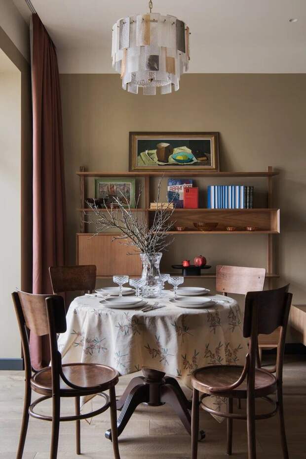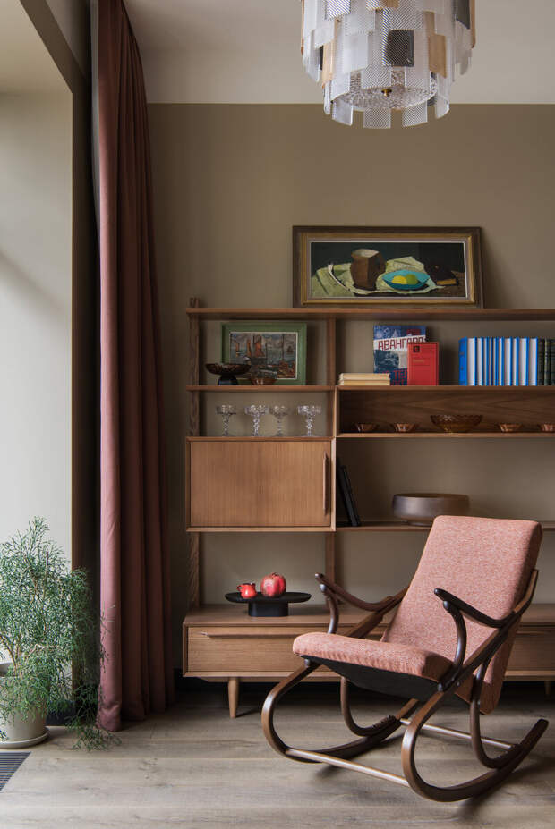 Здесь немало старинных вещей. И у каждой из них своя история. Какие-то предметы (например, стулья 1920-х годов) были найдены на Авито. Какие-то вещи достались Алисе по наследству от старших родственников (особенно мне понравилось кресло-качалка 60-х годов). Благодаря этому получился нескучный микс из разных эпох.