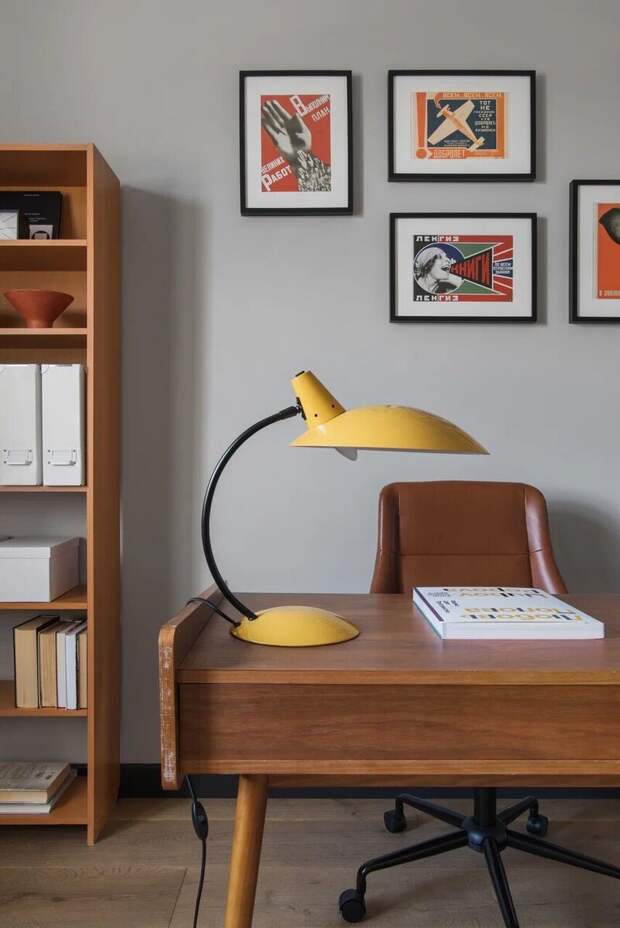 А вот конструктивистские плакаты над винтажным столом и вовсе переносят в 1920-1930 годы. Настоящий микс эпох в отдельно взятом помещении
