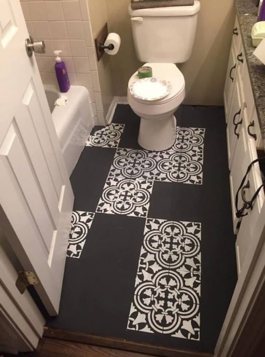 Она приобрела черную и белую водостойкие краски и нарисовала шаблон рисунка для пола.