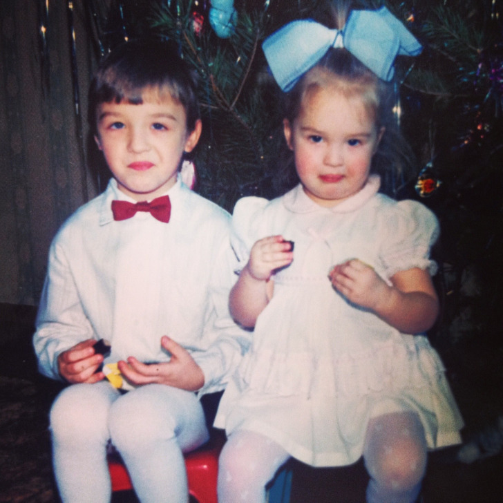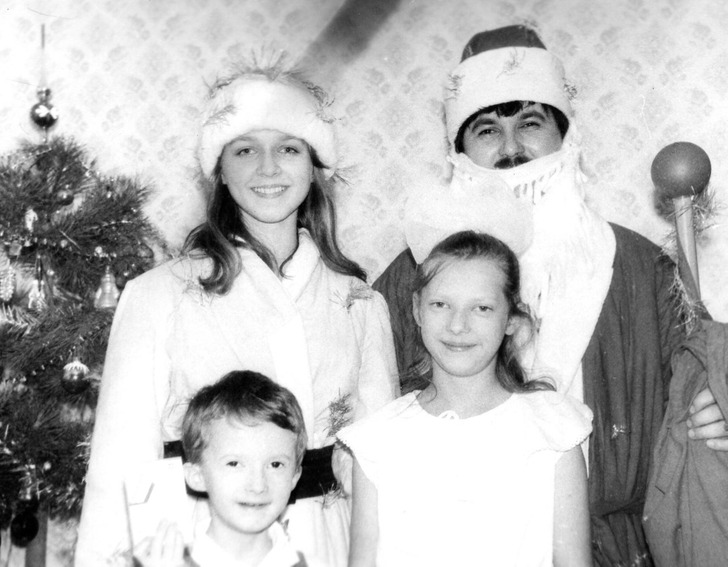 «Это фотография с моей сестрой, сделанная в 1995 году. Дед Мороз и Снегурочка на фото — знакомые родителей»