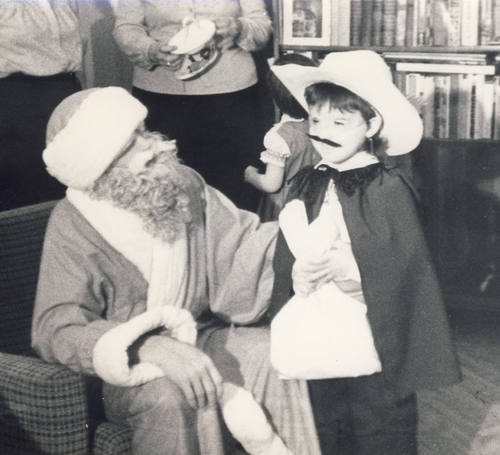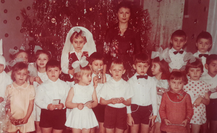 «1987 год. Мой самый впечатляющий новогодний костюм за всю жизнь. В роли Деда Мороза — самая лучшая в мире воспитательница, тетя Валя»