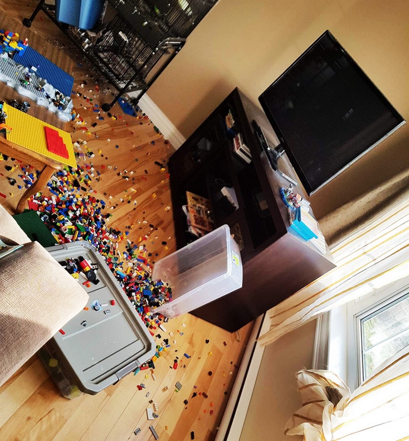 Собирал Лего из четырех тысяч деталей. Готовую сборку нечаянно уронил.