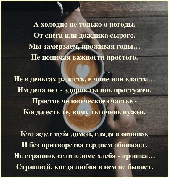Великолепное стихотворение о жизни, об отношениях межу людьми, и о том, что действительно важно для каждого из нас.