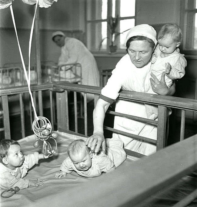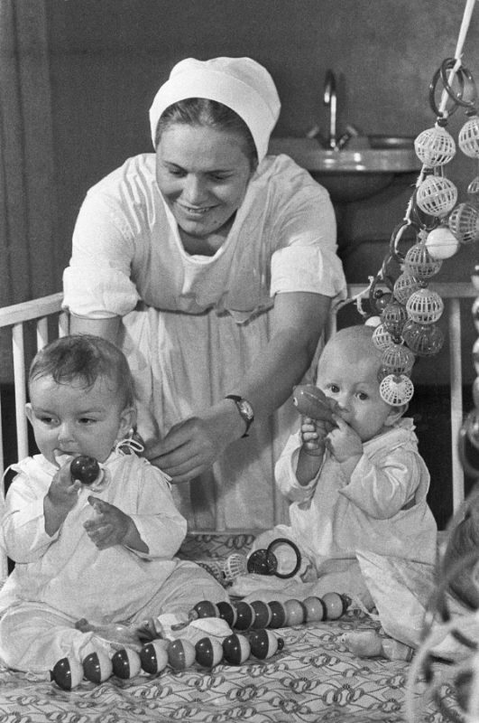 2. У женщин не было в то время возможности долго сидеть с ребенком в декрете. Поэтому маленьких деток рано сдавали в детский сад. Их там нянчили женщины, которых обучали тому, как надо ухаживать за такими маленькими детьми.