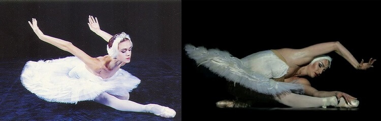 Вот что Цыганкова, кстати, говорит о «Лебедином озере»: «Внешняя бравура Черного лебедя не шла в сравнение со сдержанностью, осторожностью Белой Лебеди. Вся её жизнь, чувства, её мука от существования в двух ипостасях, спрятаны внутри. Это тонко, это сложно передать, очень много оттенков, полутонов. Руки просто невероятно важны: каждый взмах «крыла» как слово». Волочкова тогда по сравнению с Цыганковой — немая.