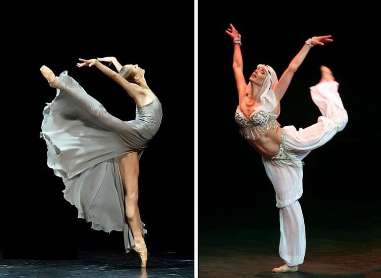 У Настасьи в молодости было одно неоспоримое преимущество: внешность ангела, очень нежная она была. Она могла бы превратиться в нежную женщину, пусть не легенду балета, но грациозную, умную, наполненную, глубокую, как это удалось другим балеринам, но увы. Анастасия стала лишь образцом пошлости. Фанаты Волочкову оправдывают: она все ж не девочка уже, родила, отяжелела. Но поэтому я рядом с ней сейчас именно взрослых балерин показываю. Вот недавнее фото совсем не юной Марии Абашовой, мамы двоих детей. Какая разница с Настастьей, не правда ли?