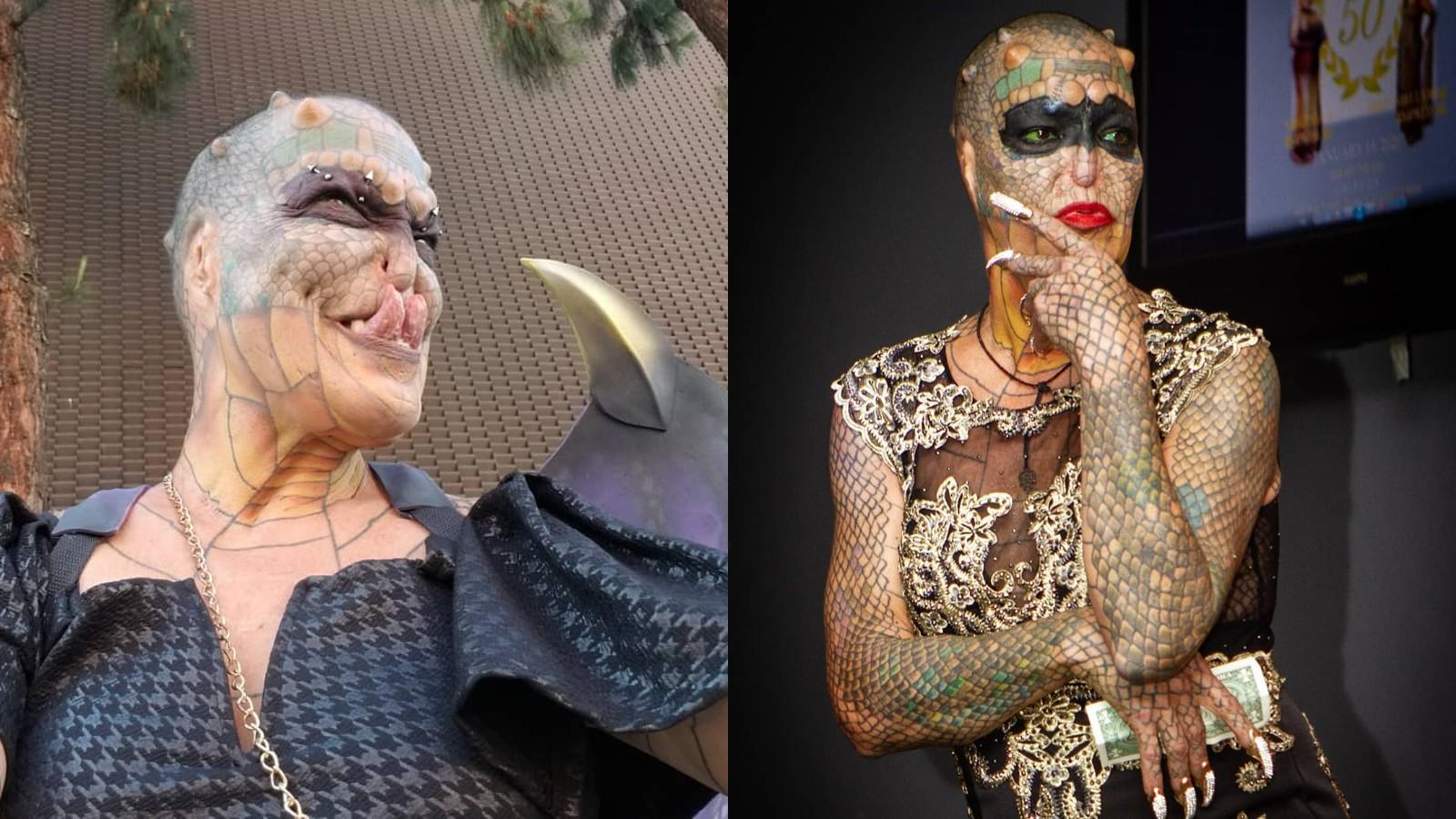 Когда-то Ричард Эрнандес из Техаса, США, был банкиром и выглядел совсем по-другому. Теперь ему 60, он официально сменил имя на Тиамат Легион Медуза, считает себя небинарной персоной и «настоящим рептилоидом», потратив на трансформацию тела $83,5 тыс. (≈ 6 млн руб.).