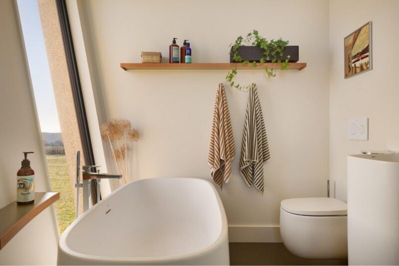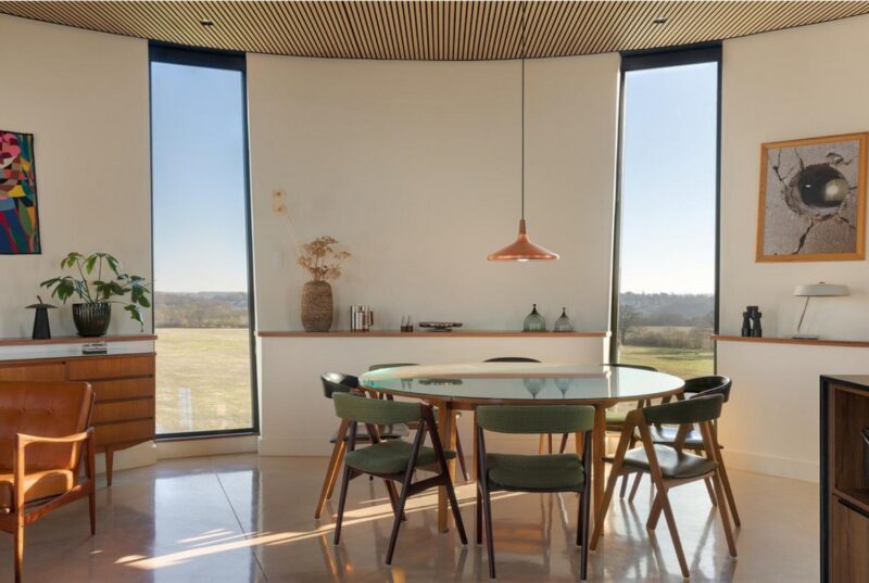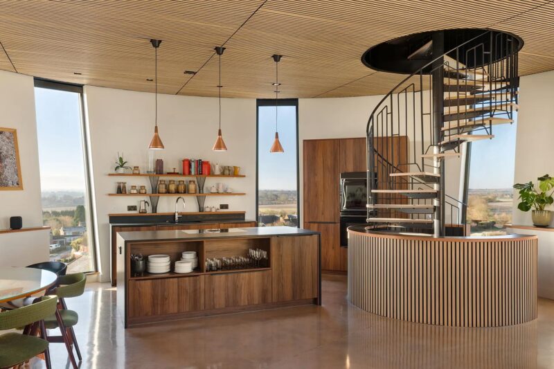 Эта амбициозная трансформация заброшенной водонапорной башни в стиле брутализма — настоящее искусство. Целых 4 года понадобилось семье, чтобы превратить конструкцию 1960-х годов в роскошную резиденцию для отдыха с интерьером, искусно соответствующим круглому пространству и открывающим фантастические виды на окружающий ландшафт.