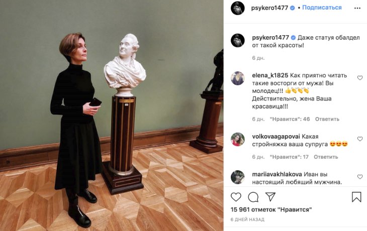 «Удивительная женщина! И как у нее только получается поддерживать себя в таком виде после родов!», «Иван, ваша жена – лучше любого объекта искусства!», «Очень красивая женщина, даже немного завидую», – писали подписчики.